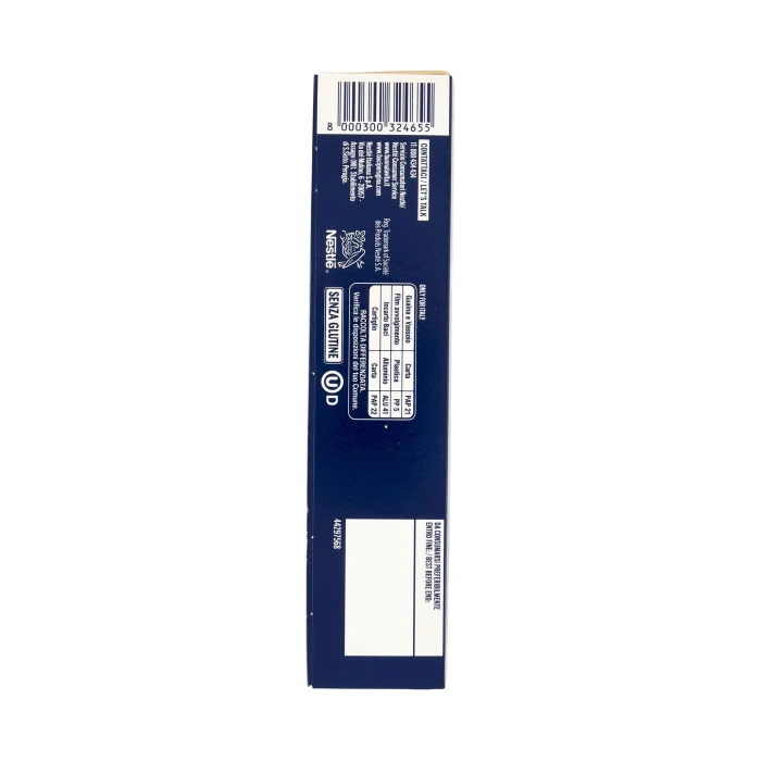 Zucchero, Nocciole (26%), Pasta di cacao*, Burro di cacao*, Burro anidro, Latte in polvere, Emulsionante lecitine, Aroma naturale di vaniglia, Può contenere altra frutta a guscio, Senza glutine, *Certificato Rainforest Alliance. Scopri di più su ra.org