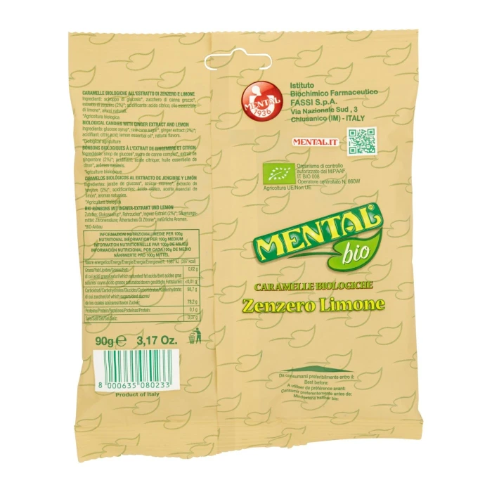 Mental bio Caramelle Biologiche Zenzero Limone 90 g