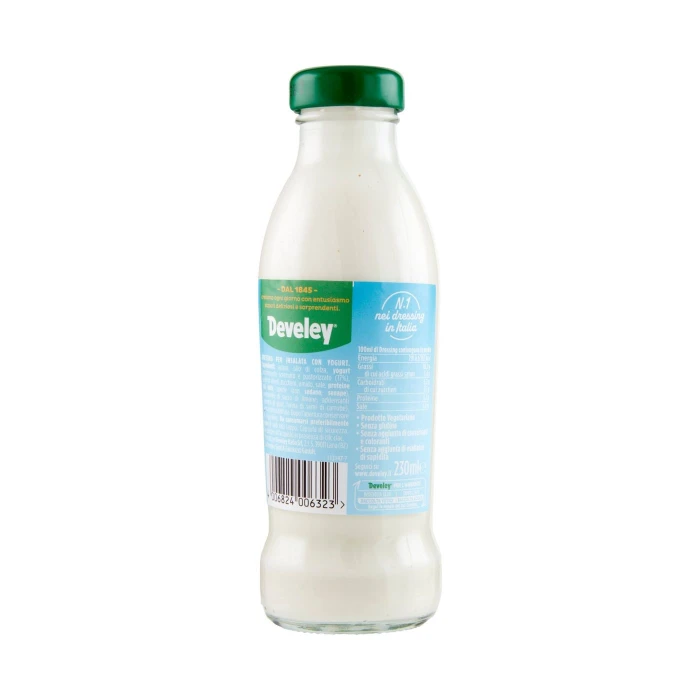Acqua, Olio di colza, Yogurt parzialmente scremato e pastorizzato (17%), Aceto di alcool, Zucchero, Amido, Sale, Proteine del latte, Spezie (con sedano, senape), Concentrato di succo di limone, Addensanti (gomma di guar, farina di semi di carrube)