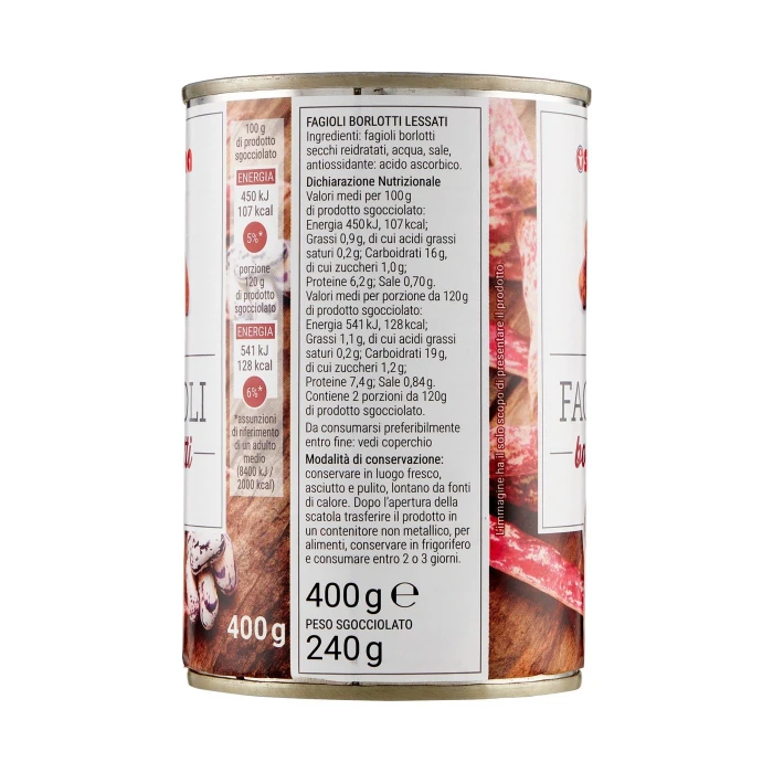 Fagioli borlotti secchi reidratati, Acqua, Sale, Antiossidante: acido ascorbico