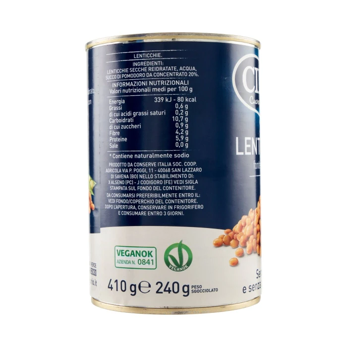 Lenticchie secche reidratate, Acqua, Succo di pomodoro da concentrato 20%