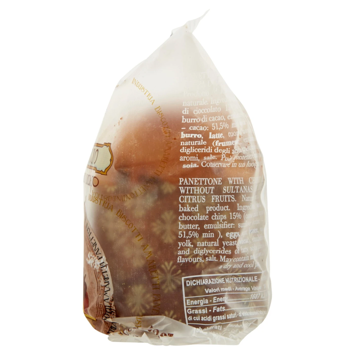 Farina di frumento- Gocce di cioccolato 15% (pasta di cacao, zucchero, burro di cacao, emulsionante: lecitina di girasole - cacao: 51,5% min)- Uova fresche- Zucchero- Burro- Latte- Tuorlo d'uova fresche- Lievito naturale (frumento)- Emulsionanti: mono e digliceridi degli acidi grassi- Sciroppo di glucosio- Aromi- Sale.