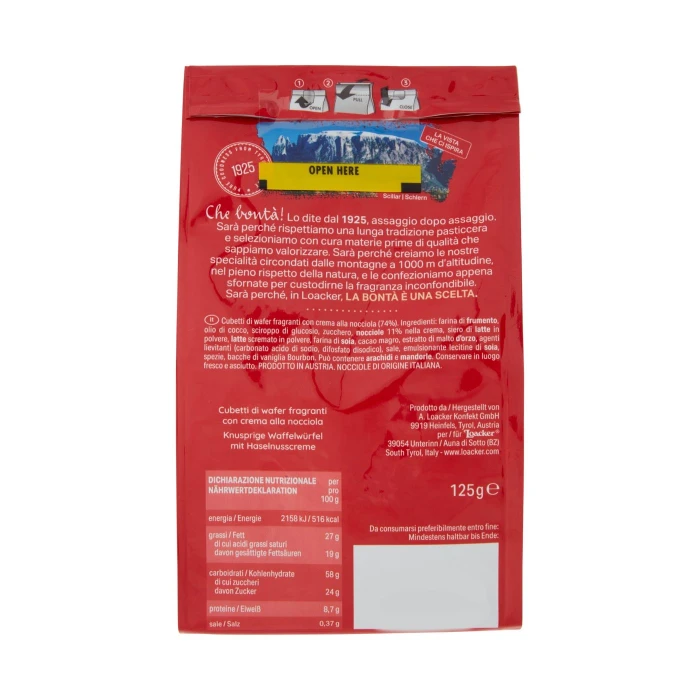 Loacker Wafer Quadratini Napolitaner con crema alle nocciole 100% italiane tostate wafers 125 g