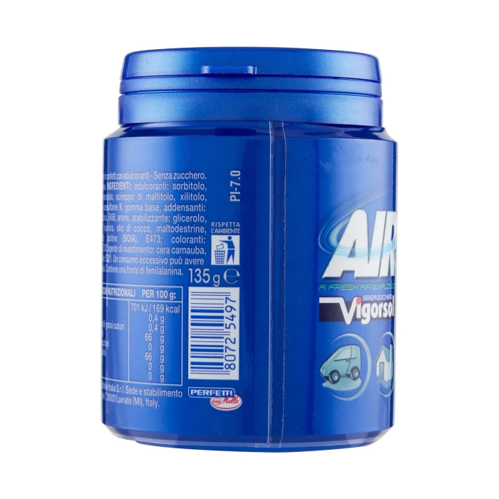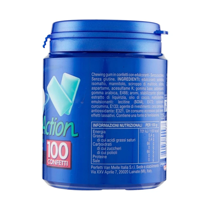 Edulcoranti: sorbitolo, isomalto, mannitolo, sciroppo di maltitolo, xilitolo, aspartame, acesulfame K, Gomma base, Addensanti: gomma arabica, E466, Aromi, Stabilizzante: glicerolo, Estratto di liquirizia, Olio di cocco, Maltodestrine, Emulsionanti: lecitine (soia), E473, Coloranti: curcumina, E133, Agente di rivestimento: cera carnauba, Antiossidante: E321