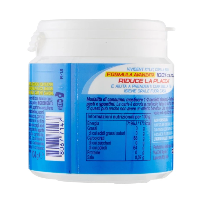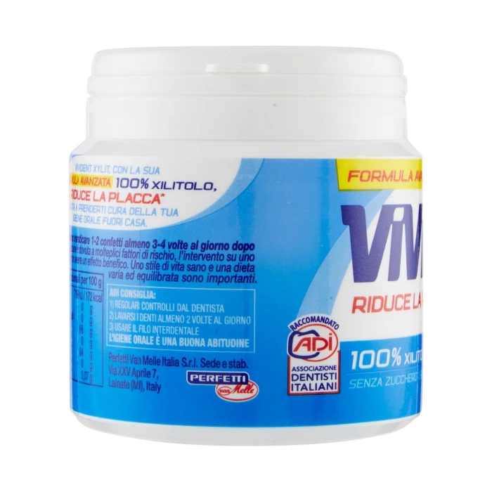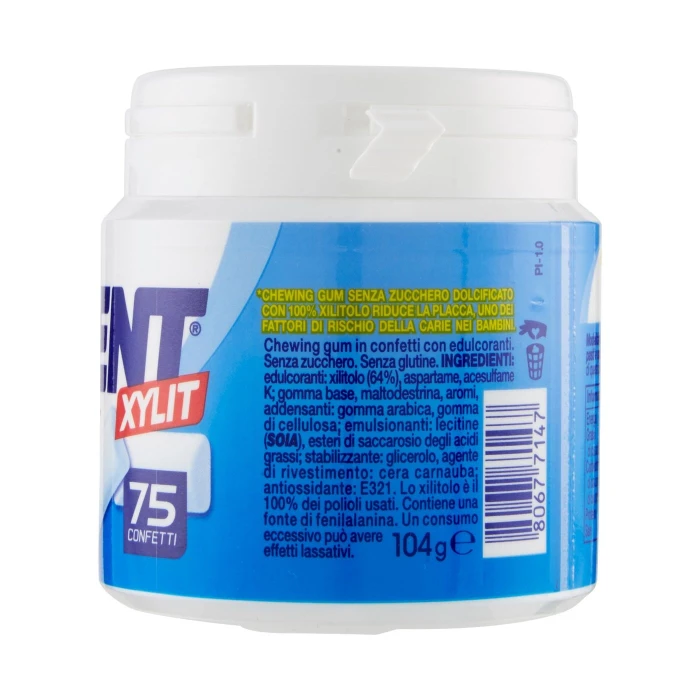 Edulcoranti: xilitolo (64%), aspartame, acesulfame K, Gomma base, Maltodestrina, Aromi, Addensanti: gomma arabica, gomma di cellulosa, Emulsionanti: lecitine (soia), esteri di saccarosio degli acidi grassi, Stabilizzante: glicerolo, Agente di rivestimento: cera carnauba, Antiossidante: E321