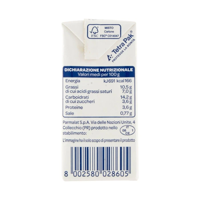 Latte intero, Panna, Farina di frumento, Amido di mais, Sale, Può contenere soia