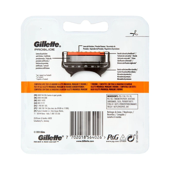 Gillette Lamette di Ricambio per Rasoio da Uomo ProGlide, 4 Ricariche