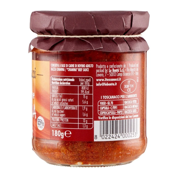 I toscanacci Ragù di carne Chianina 180 g