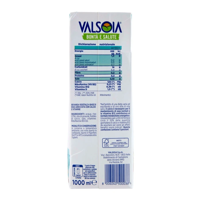 Valsoia Bontà e Salute Riso Drink 1000 ml