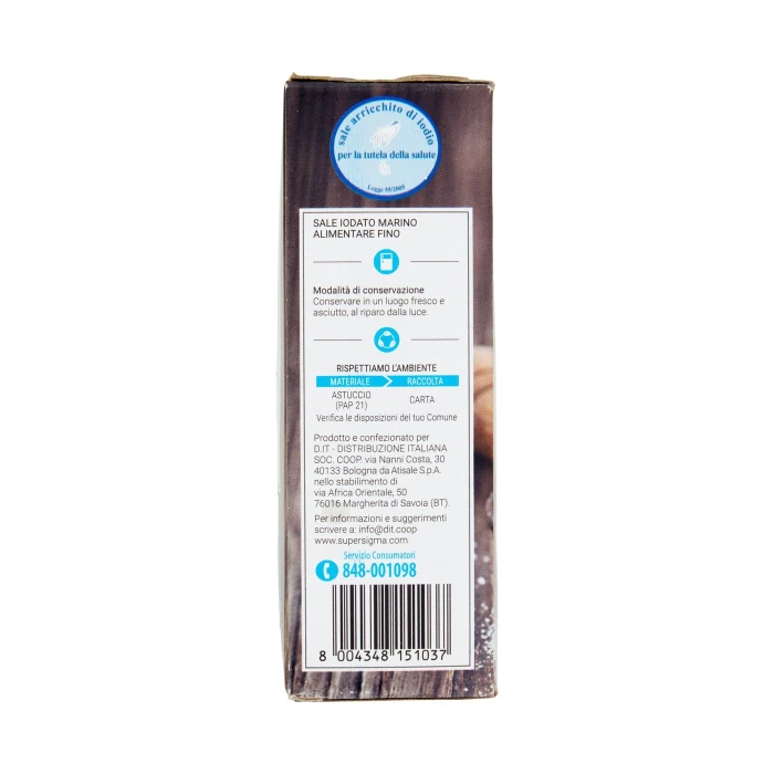 Cloruro di sodio, Iodato di potassio (0,0051%)*, Agenti antiagglomeranti: E536, *pari a 3mg di iodio (I) per 100 g di sale