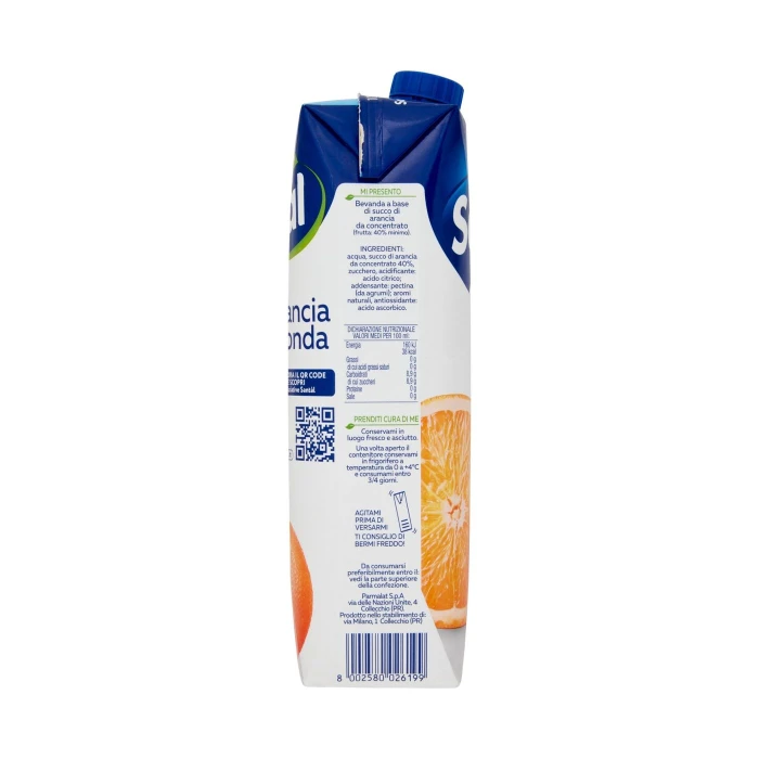 Acqua, Succo di arancia da concentrato 40%, Zucchero, Acidificante: acido citrico, Addensante: pectina (da agrumi), Aromi naturali, Antiossidante: acido ascorbico