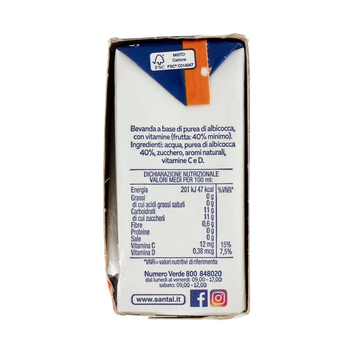 Acqua, Purea di albicocca 40%, Zucchero, Aromi naturali, Vitamine C e D