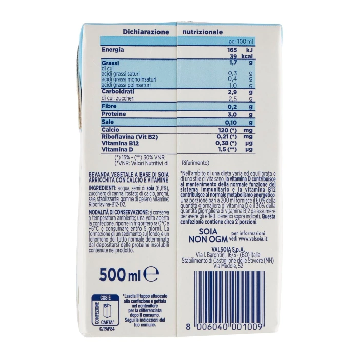 Valsoia Bontà e Salute Bevanda soia gusto Morbido 500 ml