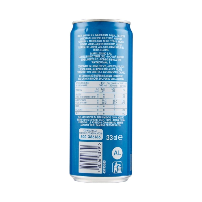 Acqua, Zucchero, Sciroppo di glucosio-fruttosio, Anidride carbonica, Acidificanti: acido citrico, Aroma: chinina monocloridrato diidrato, Aroma naturale di limone con altri aromi naturali, Senza glutine