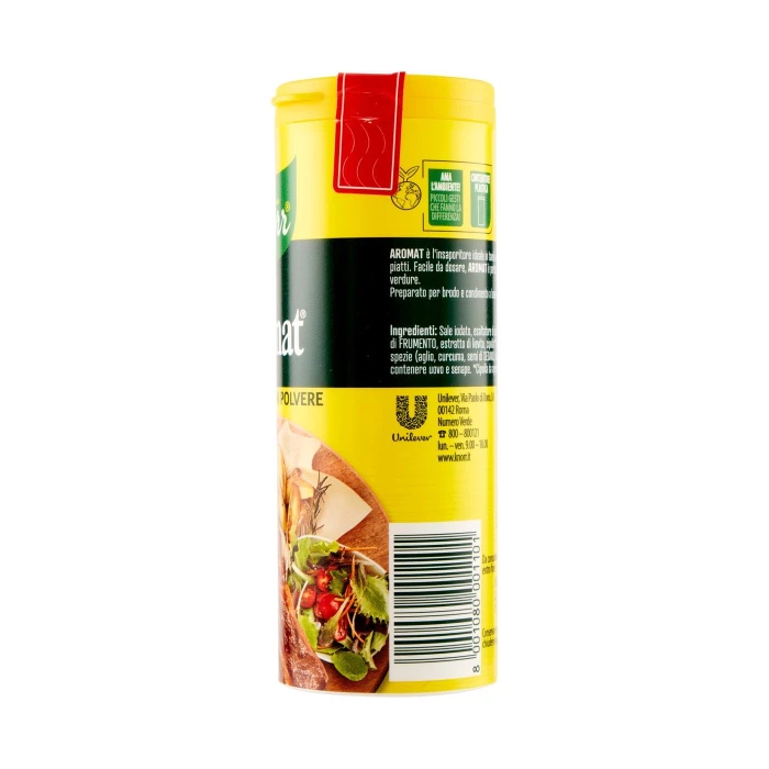 Sale iodato, Esaltatore di sapidità: glutammato monosodico, Lattosio, Amido di frumento, Estratto di lievito, Cipolla* 3%, Grasso di palma, Olio di semi di girasole, Sale, Spezie (aglio, curcuma, semi di sedano, chiodi di garofano), Estratto di funghi, Alloro, Può contenere uovo e senape, *Cipolla da agricoltura sostenibile
