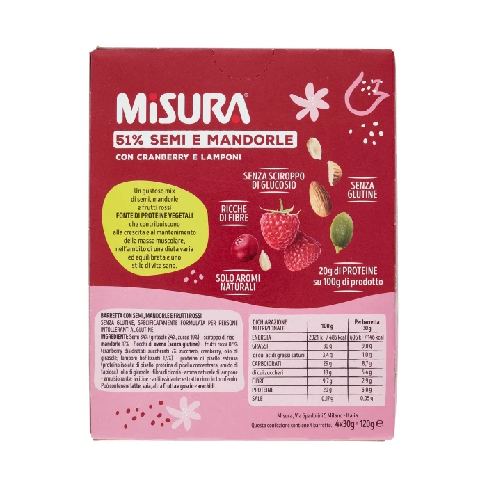 Misura Protein 51% Semi e Mandorle con Cranberry e Lamponi 4 x 30 g