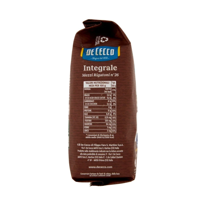 De Cecco Integrale Mezzi Rigatoni n° 26 500 g