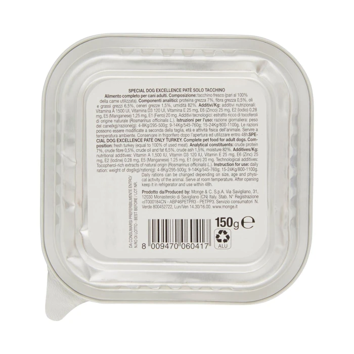 Special Dog Excellence Adult Patè Monoprotein Solo Tacchino 150 g