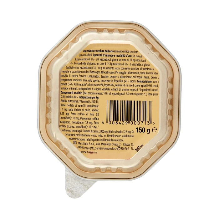 Cesar Selezioni dell'Orto Cibo Umido Cane in Vaschetta con Manzo e Verdure dell'Orto 150 g
