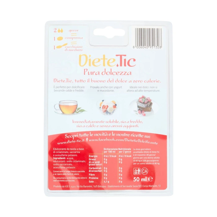 Acqua, Edulcoranti: sodio ciclammato, sodio saccarinato, acesulfame potassio