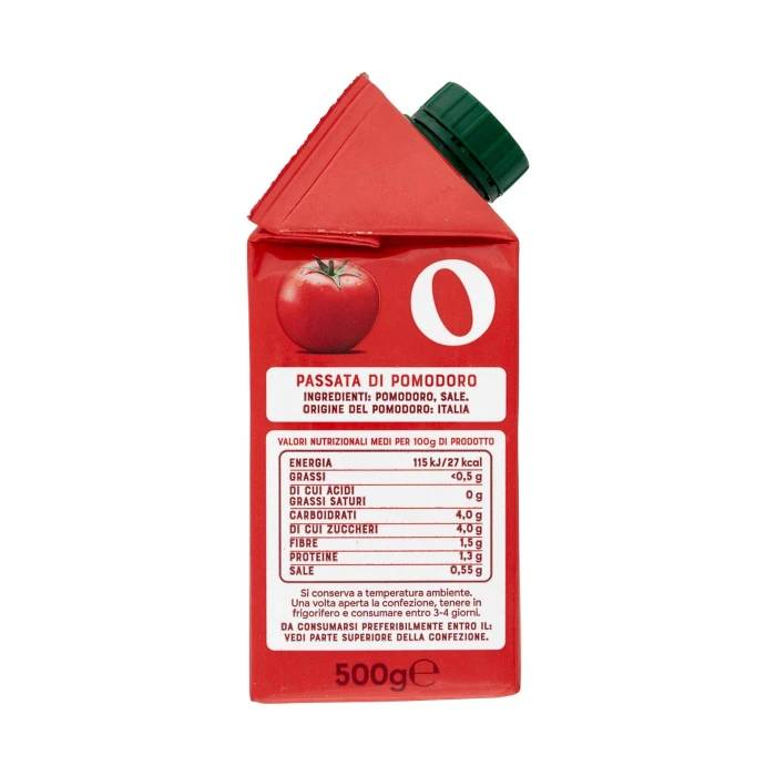 Per 100 g di prodotto - Valori nutrizionali medi per 100g di prodotto: Energia : 115 kJ/27 kcal, Grassi : <0,5 g, di cui acidi grassi saturi : 0 g, Carboidrati : 4,0 g, di cui zuccheri : 4,0 g, Fibre : 1,5 g, Proteine : 1,3 g, Sale : 0,55 g