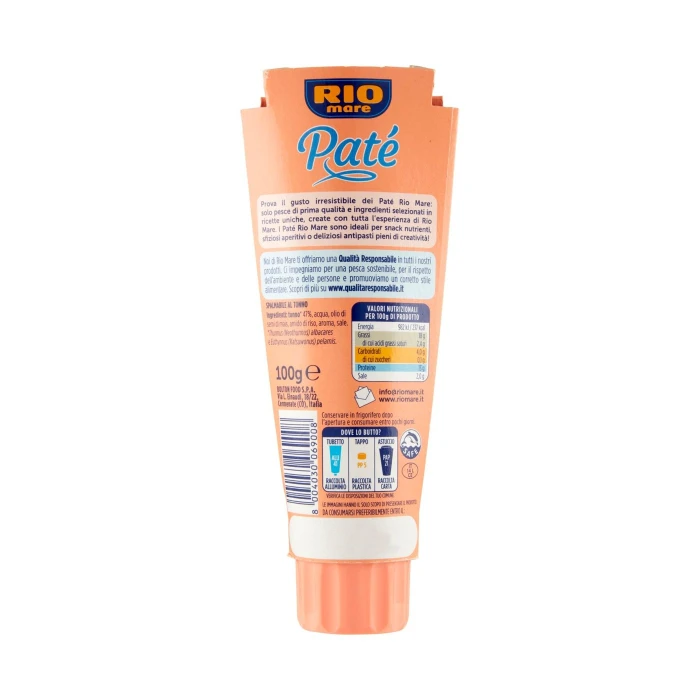 Tonno* 47%, Acqua, Olio di semi di mais, Amido di riso, Aroma, Sale, *Thunnus (neothunnus) albacares e Euthynnus (Katsuwonus) pelamis