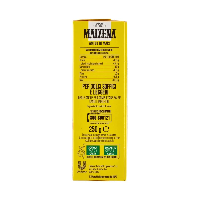 Per 100 g di prodotto - per 100g di prodotto: Energia: 1487 kJ/355 kcal, Grassi: <0,5 g, di cui acidi grassi saturi: <0,1 g, Carboidrati: 86 g, di cui zuccheri: <0,5 g, Fibre: 1,0 g, Proteine: <0,5 g, Sale: <0,01 g