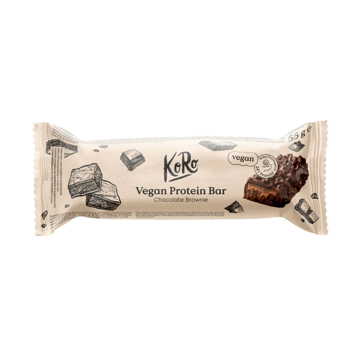 25% copertura di cioccolato (massa di cacao, dolcificante: maltitolo; burro di cacao, emulsionante: lecitine; aroma naturale), miscela di proteine vegane (PROTEINE DI SOIA, proteine di piselli, proteine di riso), umettante: E 422; Rivestimento composito con dolcificante e fibra (dolcificante: maltitolo; burro di cacao, fibra: oligofruttosio; massa di cacao, farina di riso, emulsionante: lecitina; aroma naturale), fibra: polidestrosio; 4% CEREALI PROTEICI DI SOIA (PROTEINE DI SOIA ISOLATE, cacao, amido di tapioca), olio di girasole, cacao magro in polvere, aroma, dolcificante: E 955.Può avere un effetto lassativo se consumato in eccesso.