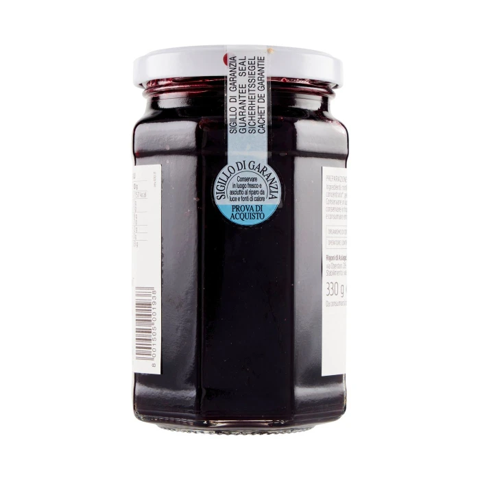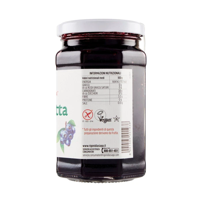 Mirtilli neri di bosco* 55%, Succo di mela concentrato*, Gelificante: pectina, *Biologico, Senza glutine