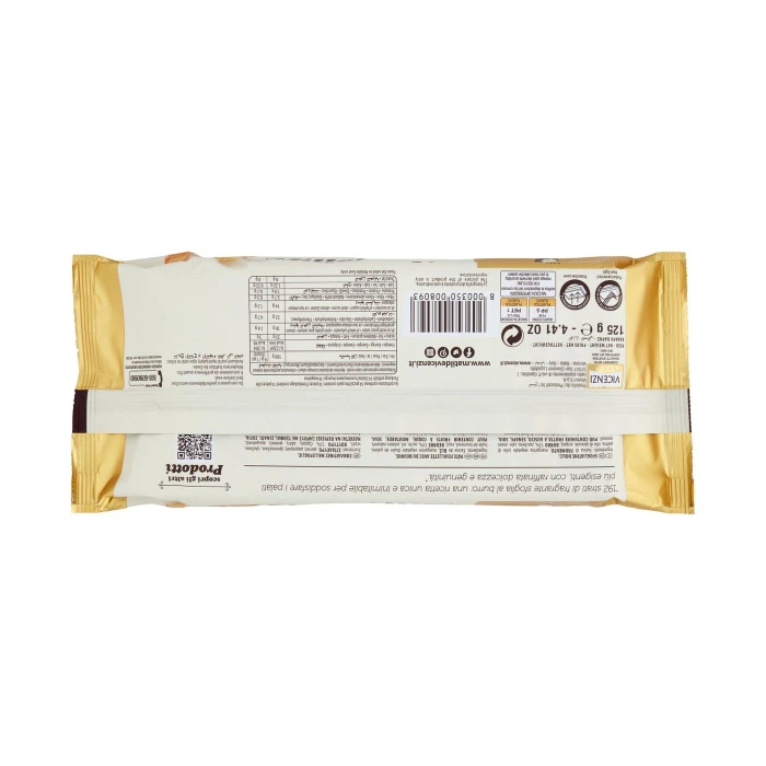 Per 100 g di prodotto - 100 g: Energia : 2269 kJ, : 544 kcal, Grassi : 33 g, di cui acidi grassi saturi : 18 g, Carboidrati : 52 g, di cui zuccheri : 14 g, Fibre : 3.7 g, Proteine : 7.9 g, Sale : 1.32 g, La confezione contiene 14 pezzi 9 g / 1 pz: Energia : 204 kJ, : 49 kcal, Grassi : 3 g, di cui acidi grassi saturi : 1.6 g, Carboidrati : 4.7 g, di cui zuccheri : 1.3 g, Fibre : 0.3 g, Proteine : 0.7 g, Sale : 0.12 g, La confezione contiene 14 pezzi