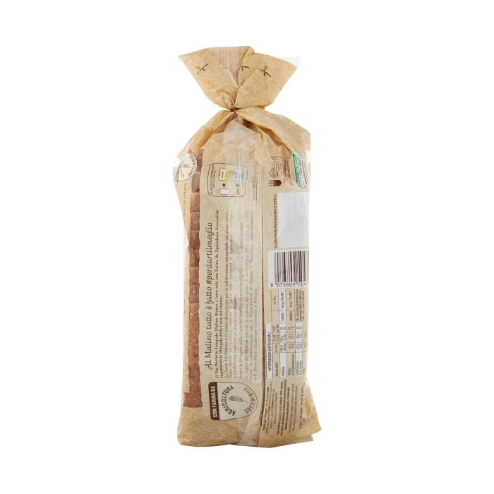 Farina integrale di grano tenero 65,9%, Acqua, Olio di girasole 5,7%, Glutine di frumento, Lievito, Sale, Trattato con alcool etilico in superficie, Può contenere tracce di: frutta a guscio, latte, sesamo, soia e uova