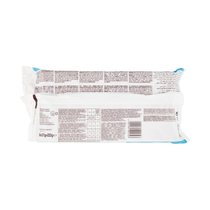 Per 100 g di prodotto - 100g: Energia : 1777 kJ, : 425 kcal, Grassi : 21 g, di cui acidi grassi saturi : 16 g, Carboidrati : 53 g, di cui zuccheri : 38 g, Proteine : 5,7 g, Sale : 0,32 g, *AR = Assunzioni di riferimento di un adulto medio (8400 kJ/ 2000 kcal), ** 1 porzione = 1 merendina (circa 37 g). Questo imballaggio contiene 6 porzioni 37g**: Energia : 658 kJ, : 157 kcal, Grassi : 7,8 g, di cui acidi grassi saturi : 5,9 g, Carboidrati : 20 g, di cui zuccheri : 14 g, Proteine : 2,1 g, Sale : 0,12 g, *AR = Assunzioni di riferimento di un adulto medio (8400 kJ/ 2000 kcal), ** 1 porzione = 1 merendina (circa 37 g). Questo imballaggio contiene 6 porzioni % AR* 37g: Energia : 8 %, , Grassi : 11 %, di cui acidi grassi saturi : 29 %, Carboidrati : 8 %, di cui zuccheri : 16 %, Proteine : 4 %, Sale : 2 %, *AR = Assunzioni di riferimento di un adulto medio (8400 kJ/ 2000 kcal), ** 1 porzione = 1 merendina (circa 37 g). Questo imballaggio contiene 6 porzioni