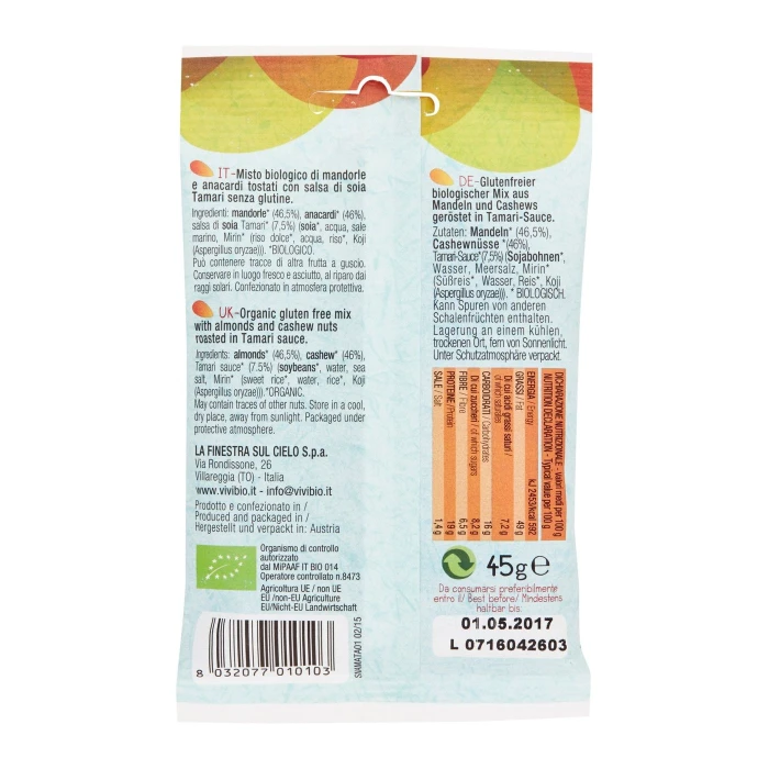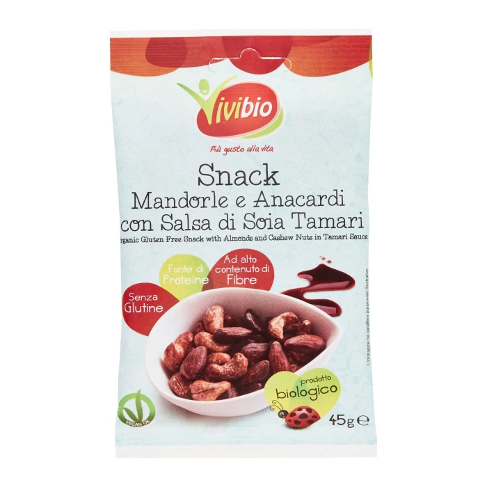 Vivibio Snack Mandorle e Anacardi con Salsa di Soia Tamari 45 g