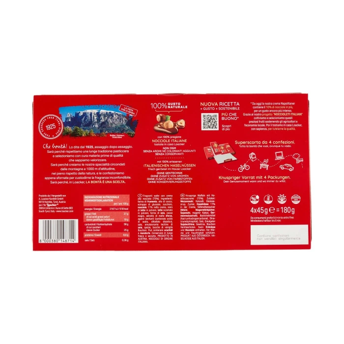 Loacker Wafer Classic Napolitaner Wafers con crema alla nocciola, nocciole 100% italiane 4 x 45 g
