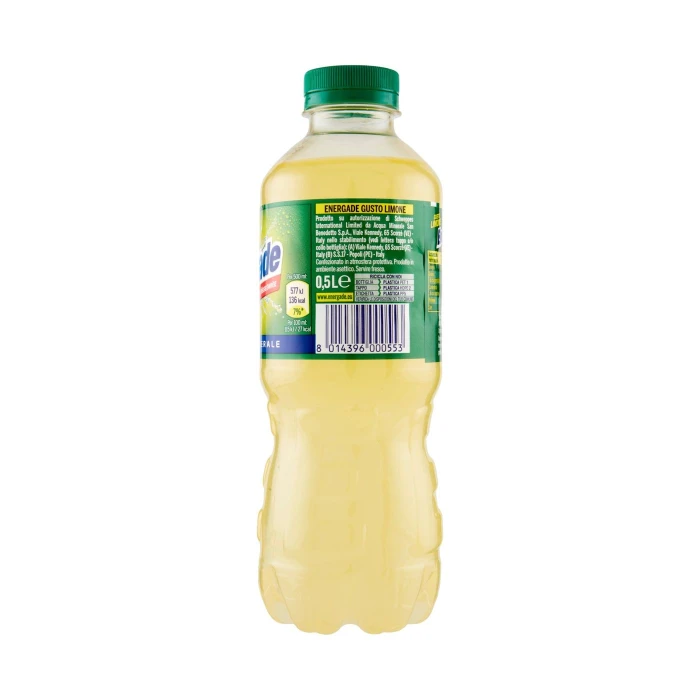 Acqua minerale naturale (80%), Zucchero, Acidificante: acido citrico, Correttore di acidità: sodio citrato, Aroma naturale limone con altri aromi naturali, Sali minerali 0,1% (sodio cloruro, citrati di potassio, magnesio solfato), Antiossidante: acido ascorbico, Stabilizzante (E414), Colorante: beta carotene