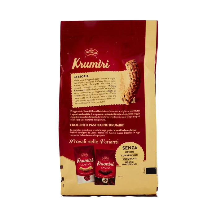 Per 100 g di prodotto - x 100 g: Energia : 2082 kJ, : 497 kcal, Grassi : 23 g, di cui acidi grassi saturi : 11 g, Carboidrati : 65 g, di cui zuccheri : 27 g, Fibre : 2,3 g, Proteine : 7,5 g, Sale : 0,20 g, * Assunzioni di riferimento di un adulto medio (8400 kJ / 2000 kcal) , La confezione contiene circa 27 biscotti x 1 Biscotto (10,7 g): Energia : 223 kJ, : 53 kcal, Grassi : 2,4 g, di cui acidi grassi saturi : 1,2 g, Carboidrati : 6,9 g, di cui zuccheri : 2,8 g, Fibre : 0,2 g, Proteine : 0,8 g, Sale : 0,02 g, * Assunzioni di riferimento di un adulto medio (8400 kJ / 2000 kcal) , La confezione contiene circa 27 biscotti % RI* (10,7 g): Energia : 3%, , Grassi : 3%, di cui acidi grassi saturi : 6%, Carboidrati : 3%, di cui zuccheri : 3%, Fibre : -, Proteine : 2%, Sale : 0,3%, * Assunzioni di riferimento di un adulto medio (8400 kJ / 2000 kcal) , La confezione contiene circa 27 biscotti