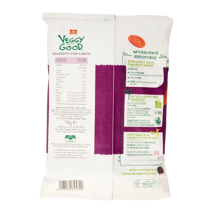San Carlo Benessere Veggy Good Quadrotti con Carota 70 g