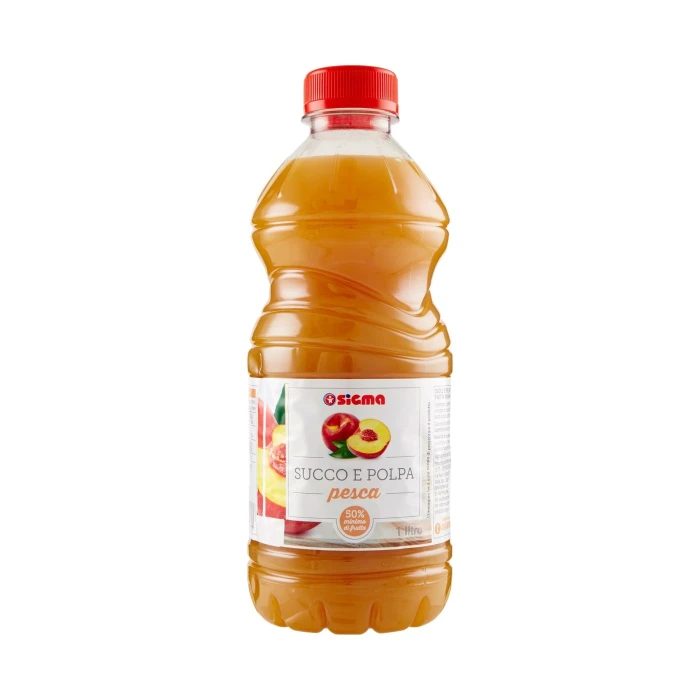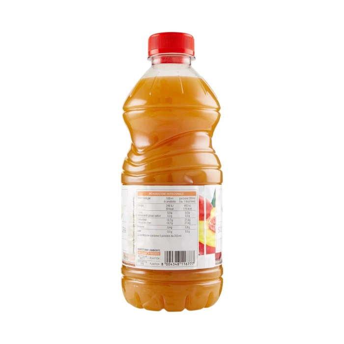 Purea di pesca, Acqua, Zucchero, Sciroppo di glucosio-fruttosio, Acidificante: acido citrico, Antiossidante: acido ascorbico