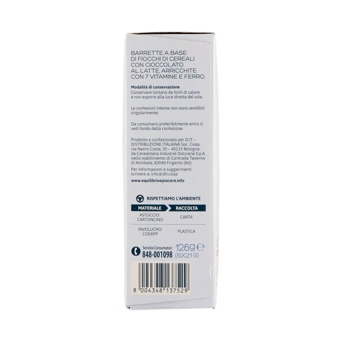 Equilibrio & Piacere Barrette di Cereali con Cioccolato al Latte 126 g