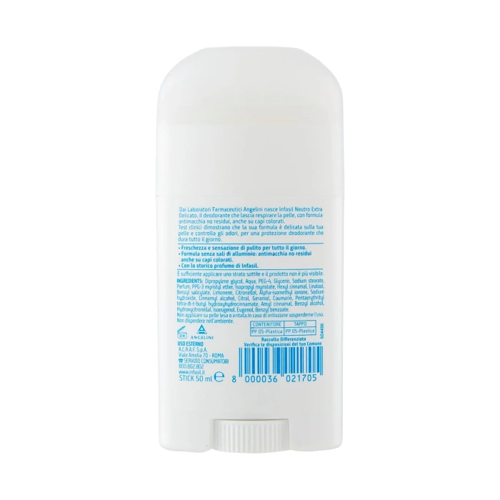 Dipropylene glycol, Aqua, PEG-4, Glycerin, Sodium stearate, Parfum, PPG-3 myristyl ether, Isopropyl myristate, Hexyl cinnamal, Linalool, Benzyl salicylate, Limonene, Citronellol, Alpha-isomethyl ionone, Sodium hydroxide, Cinnamyl alcohol, Citral, Geraniol, Coumarin, Pentaerythrityl tetra-di-t-butyl hydroxyhydrocinnamate, Amyl cinnamal, Benzyl alcohol, Hydroxycitronellal, Isoeugenol, Eugenol, Benzyl benzoate