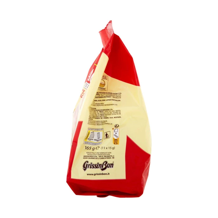 Farina di grano tenero tipo 0, Olio extra vergine d'oliva 7,7%, Crema di lievito, Sale iodato 2,7% (sale, iodato di potassio 0,007%), Farina di frumento maltato, Estratto di malto d'orzo, Aromi naturali, Può contenere semi di sesamo, soia, senape, lupini