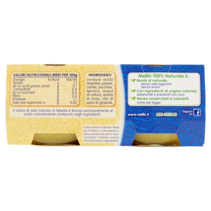 Mellin Verdure Miste 100% Naturale Omogeneizzato 2 x 80 g
