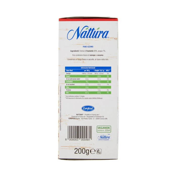 Farina di frumento 93%, Acqua 7%, Può contenere tracce di senape e sesamo