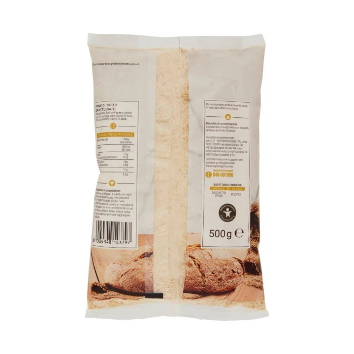 Per 100 g di prodotto - Energia: 1557 kJ: 367 kcal, Grassi: 1,5 g, - di cui acidi grassi saturi: 0,3 g, Carboidrati: 75 g, - di cui zuccheri: 1,8 g, Proteine: 11 g, Sale: 1,1 g