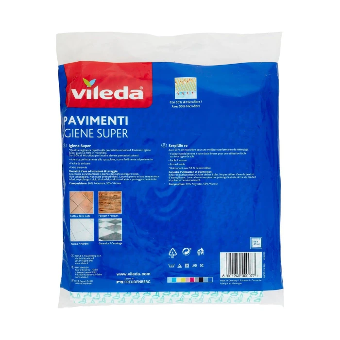 Vileda Igiene Super - panni per pulire tutti i tipi di pavimento, con 50% in microfibra, 3x 45x50 cm