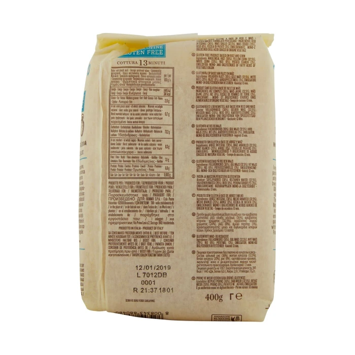 Riso integrale (36%), Mais giallo (32,5%), Mais crudo (20%), Riso (8%), Fecola di patate (3%), Emulsionante: mono- e digliceridi degli acidi grassi di origine vegetale
