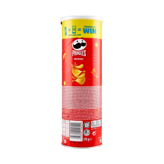 Per 100 g di prodotto - /100 g : Energia : 2227 kJ, : 534 kcal, Grassi : 31 g, di cui acidi grassi saturi : 6,6 g, Carboidrati : 56 g, di cui zuccheri : 1,4 g, Fibre : 3,5 g, Proteine : 5,9 g, Sale : 1,1 g, *Assunzioni di riferimento di un adulto medio (8400 kJ / 2000 kcal) , Numero di porzioni per una confezione di 175g: 5-6 /30 g : Energia : 668 kJ, : 160 kcal, Grassi : 9,3 g, di cui acidi grassi saturi : 2,0 g, Carboidrati : 17 g, di cui zuccheri : 0,4 g, Fibre : 1,1 g, Proteine : 1,8 g, Sale : 0,33 g, *Assunzioni di riferimento di un adulto medio (8400 kJ / 2000 kcal) , Numero di porzioni per una confezione di 175g: 5-6 RI* /30 g: Energia : 8 %, , Grassi : 13 %, di cui acidi grassi saturi : 10 %, Carboidrati : 7 %, di cui zuccheri : 0.4 %, Fibre , Proteine : 4 %, Sale : 6 %, *Assunzioni di riferimento di un adulto medio (8400 kJ / 2000 kcal) , Numero di porzioni per una confezione di 175g: 5-6