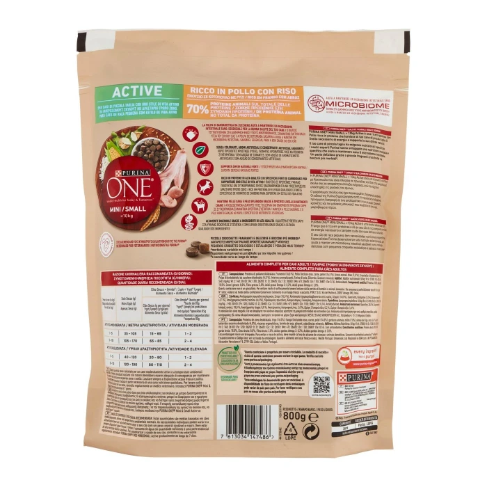 PURINA ONE Mini/Small Active Pollo con Riso 800 g