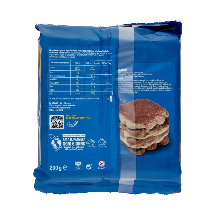 Per 100 g di prodotto - 100 g: energia : 1604 kJ, : 380 kcal, grassi : 7,0 g, di cui acidi grassi saturi : 2,2 g, carboidrati : 70 g, di cui zuccheri : 32 g, fbre : 1,1 g, proteine : 8,6 g, sale : 0,20 g, *RI = Assunzioni di riferimento di un adulto medio (8 400 kJ/2 000 kcal), 12x Biscotti 16,6 g = 1 Biscotto: energia : 266 kJ, : 63 kcal, grassi : 1,2 g, di cui acidi grassi saturi : 0,4 g, carboidrati : 12 g, di cui zuccheri : 5,3 g, fbre : 0,2 g, proteine : 1,4 g, sale : 0,03 g, *RI = Assunzioni di riferimento di un adulto medio (8 400 kJ/2 000 kcal), 12x Biscotti %RI* per 16,6 g: energia : 3 %, , grassi : 2 %, di cui acidi grassi saturi : 2 %, carboidrati : 4 %, di cui zuccheri : 6 %, fbre : -, proteine : 3 %, sale : 1 %, *RI = Assunzioni di riferimento di un adulto medio (8 400 kJ/2 000 kcal), 12x Biscotti