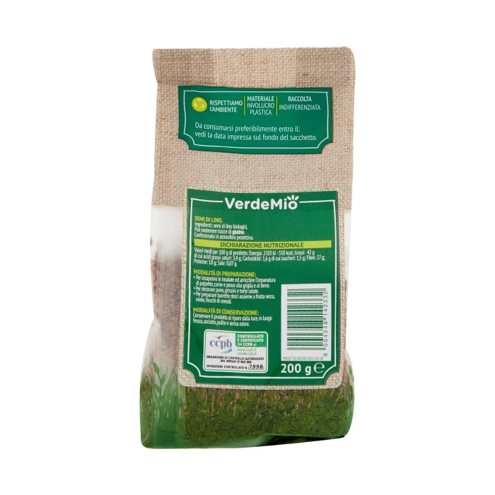 Per 100 g di prodotto - Energia: 2103 kJ - 510 kcal, Grassi: 42 g, di cui acidi grassi saturi: 3,4 g, Carboidrati: 1,6 g, di cui zuccheri: 1,5 g, Fibre: 27 g, Proteine: 18 g, Sale: 0,07 g